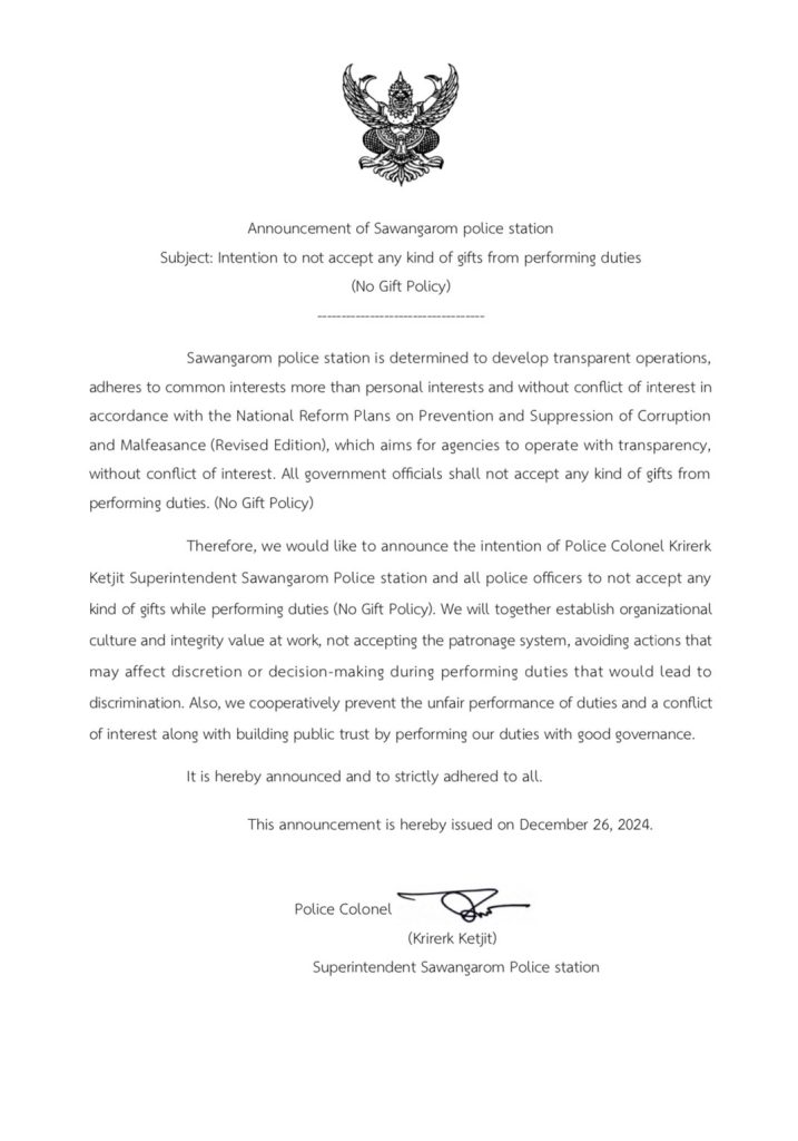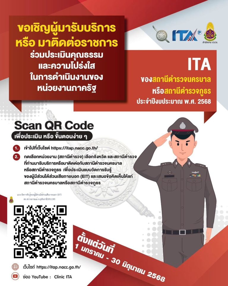 ประชุมการขับเคลื่อนการประเมินคุณธรรมและความโปร่งใสในการดำเนินงานของหน่วยงานภาครัฐ (Integrity and Transparency Assessment: ITA) ของสถานีตำรวจ ประจำปีงบประมาณ พ.ศ.2568