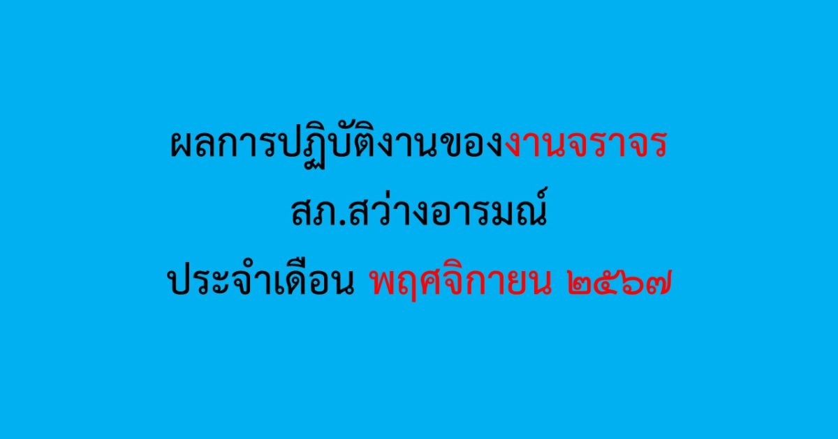 งานจราจร 30 พฤศจิกายน 2567 โดย admin / ผลการปฏิบัติงานของแต่ละสายงาน,ผลการปฏิบัติงานของแต่ละสายงาน,พฤศจิกายน 2567 ผลการปฏิบัติงาน เดือน พฤศจิกายน 2567 (งานจราจร)ดาวน์โหลดPDF ผลการปฏิบัติงาน เดือน พฤศจิกายน 2567 (งานจราจร)ดาวน์โหลดWord