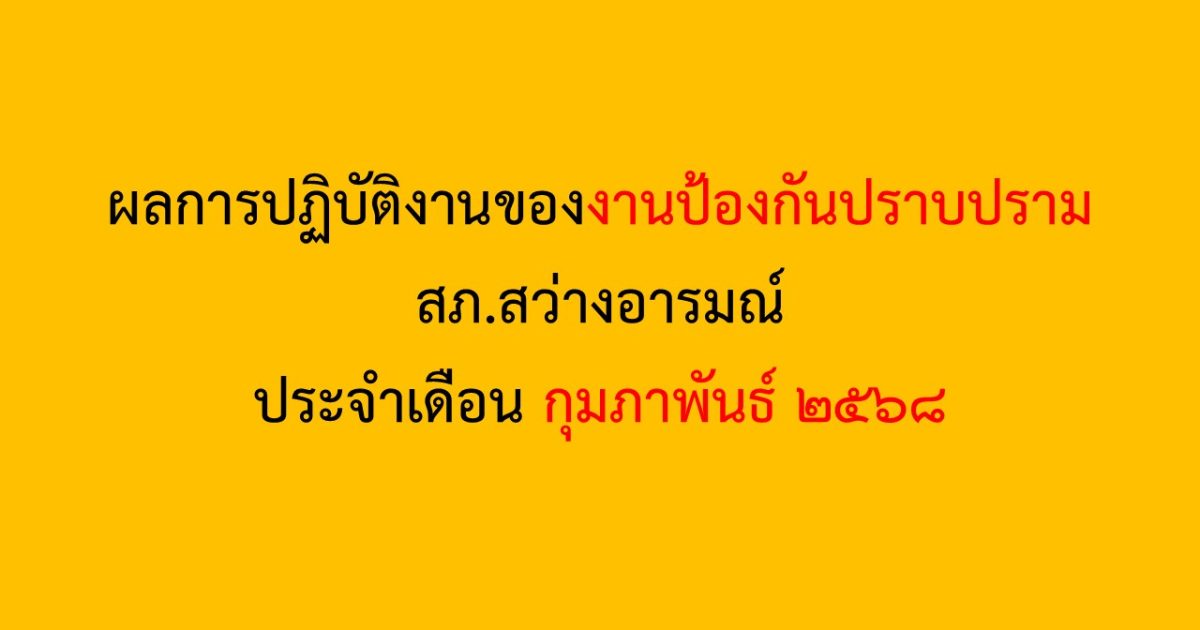 งานป้องกันปราบปราม 28 กุมภาพันธ์ 2568 โดย admin / ผลการปฏิบัติงานของแต่ละสายงาน,กุมภาพันธ์ 2568,ผลการปฏิบัติงานของแต่ละสายงาน ผลการปฏิบัติงาน เดือน กุมภาพันธ์ 2568 (งานป้องกันปราบปราม)ดาวน์โหลดPDF ผลการปฏิบัติงาน เดือน กุมภาพันธ์ 2568 (งานป้องกันปราบปราม)ดาวน์โหลดWord