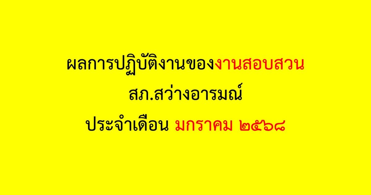 งานสอบสวน 31 มกราคม 2568 โดย admin / ผลการปฏิบัติงานของแต่ละสายงาน,ผลการปฏิบัติงานของแต่ละสายงาน,มกราคม 2568 ผลการปฏิบัติงาน เดือน มกราคม 2568 (งานสอบสวน)ดาวน์โหลดPDF ผลการปฏิบัติงาน เดือน มกราคม 2568 (งานสอบสวน)ดาวน์โหลดWord