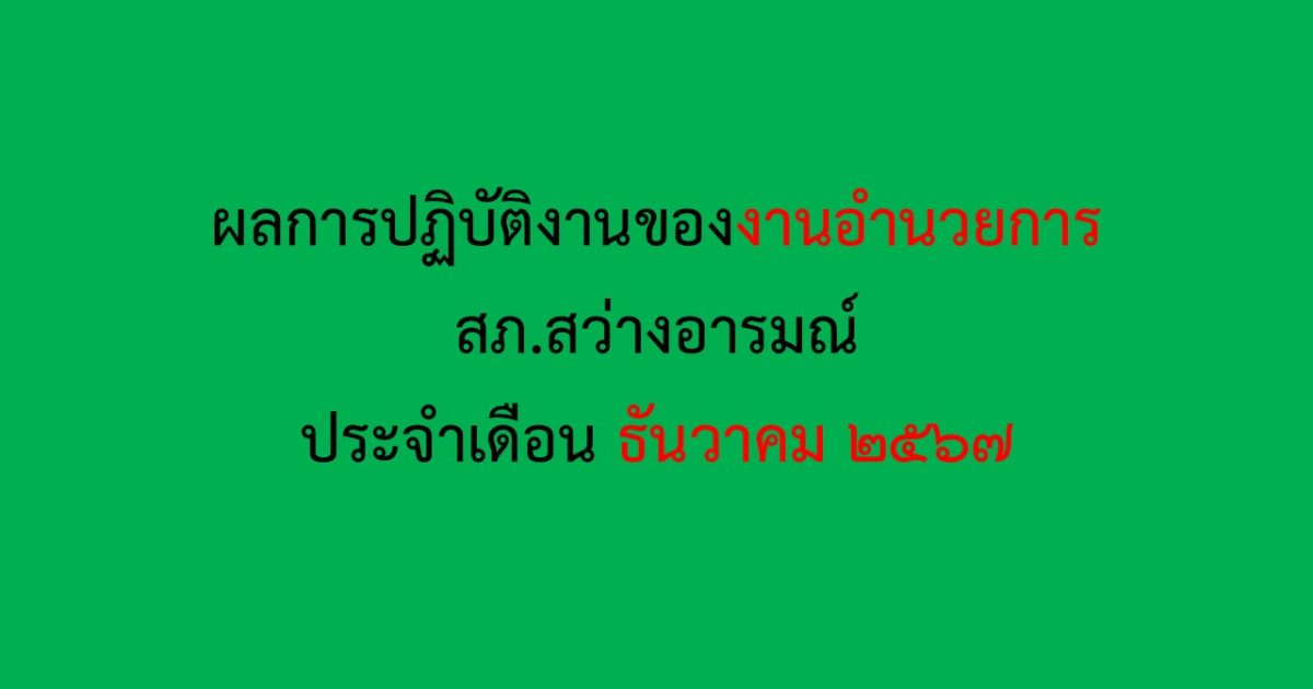 งานอำนวยการ 31 ธันวาคม 2567 โดย admin / ผลการปฏิบัติงานของแต่ละสายงาน,ธันวาคม 2567,ผลการปฏิบัติงานของแต่ละสายงาน ผลการปฏิบัติงาน เดือน ธันวาคม 2567 (งานอำนวยการ)ดาวน์โหลดPDF ผลการปฏิบัติงาน เดือน ธันวาคม 2567 (งานอำนวยการ)ดาวน์โหลดWord