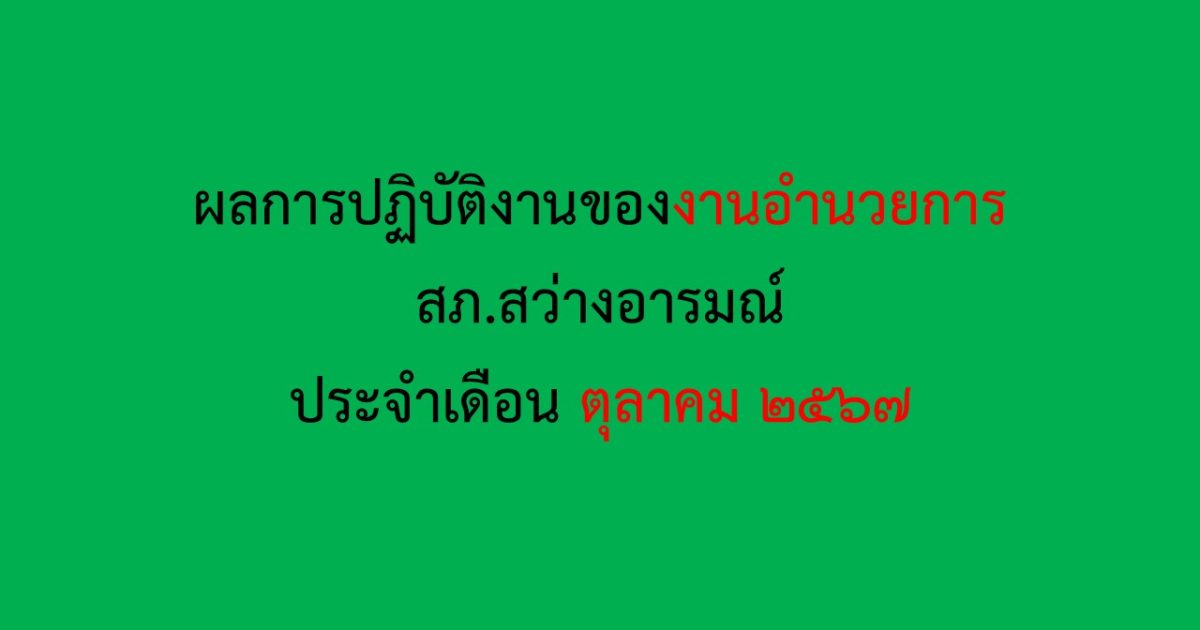 งานอำนวยการ 31 ตุลาคม 2567 โดย admin / ผลการปฏิบัติงานของแต่ละสายงาน,ตุลาคม 2567,ผลการปฏิบัติงานของแต่ละสายงาน ผลการปฏิบัติงานประจำ เดือน ตุลาคม 2567 (อำนวยการ)ดาวน์โหลดPDF ผลการปฏิบัติงานประจำ เดือน ตุลาคม 2567 (อำนวยการ)ดาวน์โหลดWord