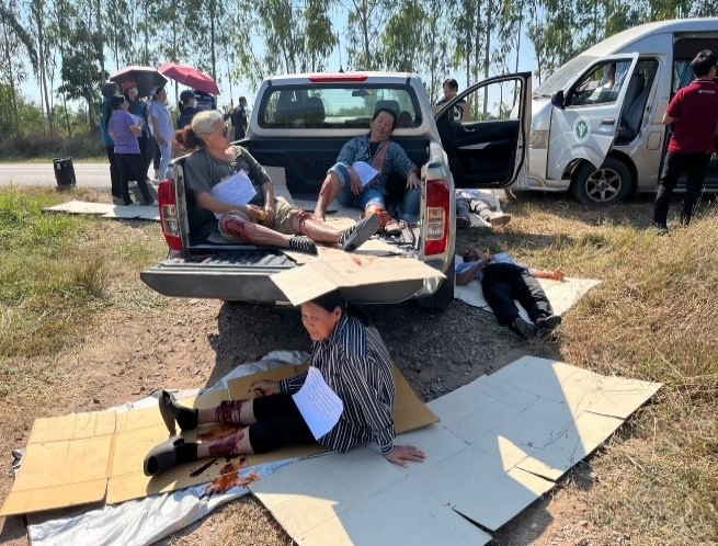 วันที่ 24 ธันวาคม 2567 เวลา 13.30 น. พ.ต.ท.ทรงจักร ประภัสสร รอง ผกก.ป.สภ.สว่างอารมณ์ พ.ต.ต.วีระชัย เมฆฉาย สวป.สภ.สว่างอารมณ์ พร้อมชุดสายตรวจร้อยเวร 2-0 จราจร จิตอาสา สภ.สว่างอารมณ์ ร่วมกับโรงพยาบาลสว่างอารมณ์อารมณ์ซักซ้อมแผนเผชิญเหตุ ว.40 อุบัติเหตุใหญ่ คนเจ็บ 10 คน บริเวณหน้าโรงไฟฟ้าไบโอเทค