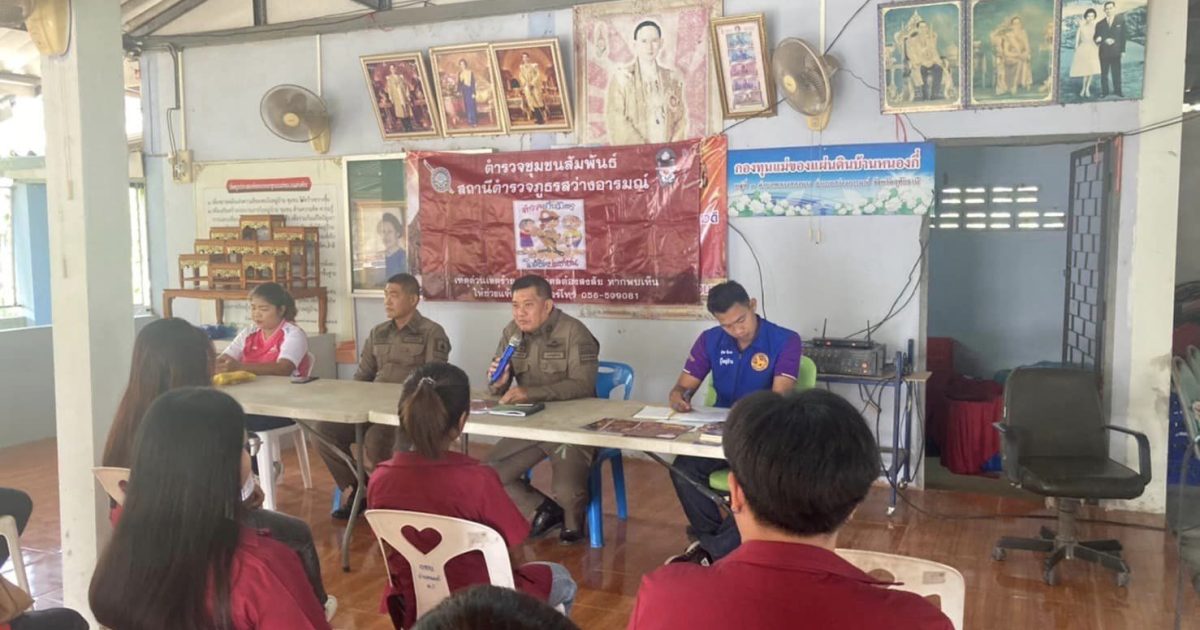 วันที่ 8 กุมภาพันธ์ 2567 เวลา 09.00 น. ภายใต้การสั่งการของ พ.ต.อ.ไกรฤกษ์ เกตุจิตรผกก.สภ.สว่างอารมณ์ พ.ต.ท.ทรงจักร ประภัสสรรอง ผกก.ป.ฯ มอบหมายให้ พ.ต.ต.วีระชัย เมฆฉาย สวป.ฯ พร้อมชุดชุมชนสัมพันธ์ สภ.สว่างอารมณ์ และ ด.ต.ณรงค์ จุลมุสิก ผบ.หมู่(ป.)ฯ สายตรวจตำบลพลวงสองนาง ร่วมกิจกรรมออกพบปะเยี่ยมเยียนประชาชน อบรมให้ความรู้เกี่ยวกับการป้องกันอาชญากรรมทางเทคโนโลยี ป้องกันการแพร่ระบาดของยาเสพติด กฎหมายจราจร พื้นที่หมู่บ้านเป้าหมาย บ้านหนองกี่ ม.3 ต.พลวงสองนาง อ.สว่างอารมณ์ จ.อุทัยธานี