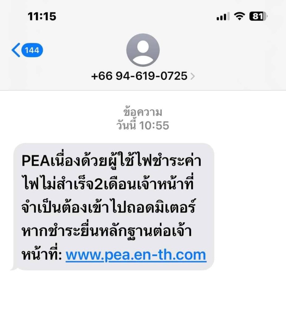 หากได้รับข้อความลักษณะนี้อย่าแตะลิ้งค์ หรือดาวน์โหลด หรือกรอกข้อมูลใดๆครับ เพื่อความปลอดภัยจากมิจฉาชีพทางออนไลน์ครับ หากมีข้อสงสัยเกี่ยวกับการใช้บริการไฟฟ้าหรือการค้างชำระค่าไฟฟ้าให้ติดต่อที่สำนักงานการไฟฟ้าใกล้บ้านท่านครับ ด้วยความห่วงใยจากสถานีตำรวจภูธรสว่างอารมณ์
