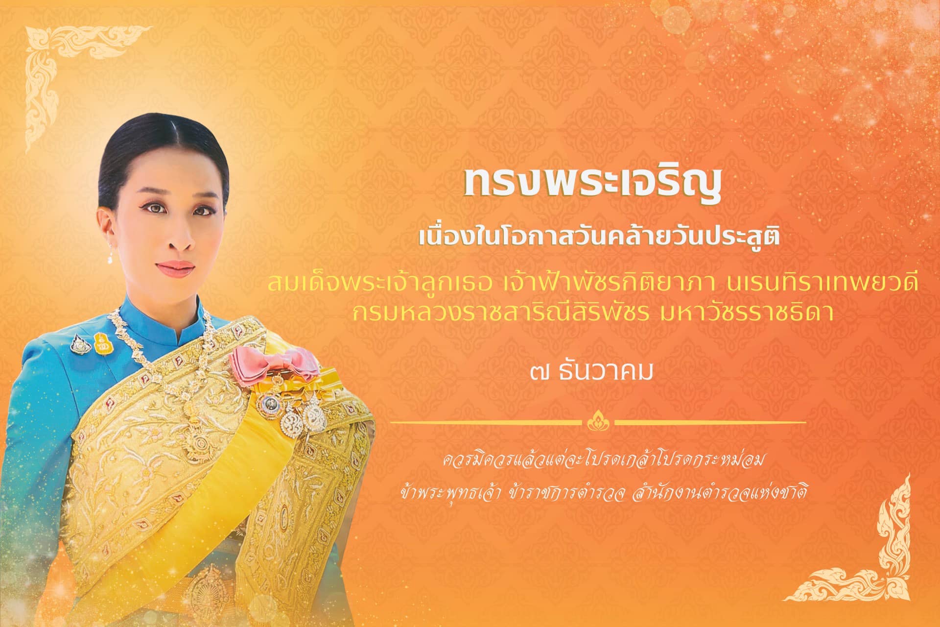 “ทรงพระเจริญ” เนื่องในโอกาสวันคล้ายวันประสูติ สมเด็จพระเจ้าลูกเธอ เจ้าฟ้าพัชรกิติยาภา นเรนทิราเทพยวด