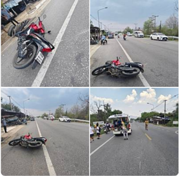 วันที่ 12 มีนาคม 2568 เวลาประมาณ 16.10 น. ได้รับแจ้งเหตุ รถจักรยานยนต์เฉียวชนกับรถจักรยานยนต์ สถานที