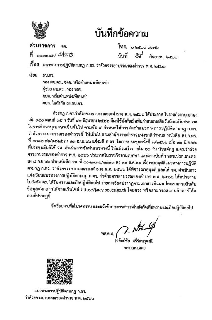 แนวทางปฏิบัติตามกฎ ก.ตร.ว่าด้วยจรรยาบรรณของตำรวจ พ.ศ.2566