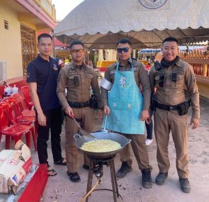วันที่ 18 มกราคม 2568 พ.ต.ท.ทรงจักร ประภัสสร รอง ผกก.ป.สภ.สว่างอารมณ์, พ.ต.ต.วีระชัย เมฆฉาย สวป.ฯ คณะกรรมการ กต.ตร.สภ.สว่างอารมณ์ พร้อมข้าราชการ สภ.สว่างอารมณ์ ร่วมกัน บริจาคปัจจัย ทำอาหาร โรงทาน อาทิเช่น ขนมจีน แกงเขียวหวาน ผัดไทย ทอดไส้กรอก ไก่นักเก็ต และเฟรนช์ฟรายส์ แจกให้กับประชาชนทั่วไปที่มาร่วมงานวัดสว่างอารมณ์